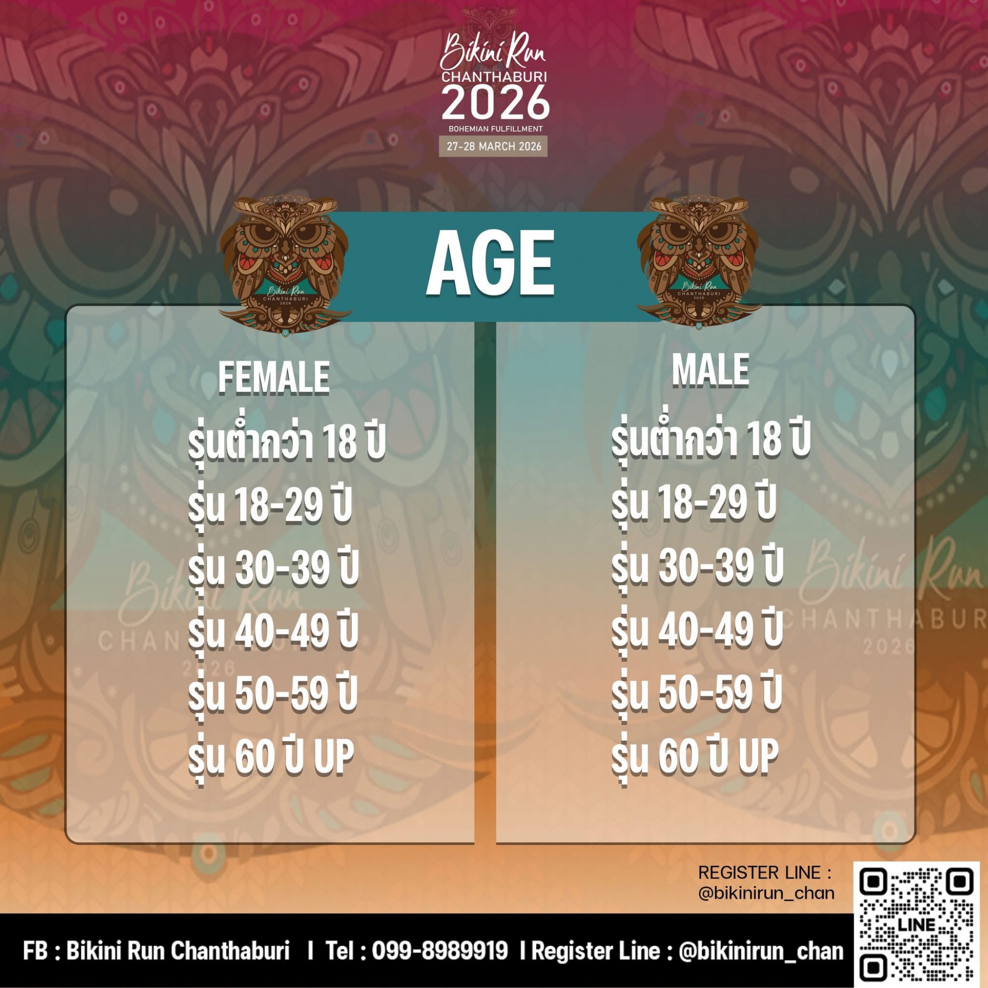 -รุ่นต่ำกว่า 18 ปี / รุ่น18-29 ปี / -รุ่น 30-39 ปี / -รุ่น 40-49 ปี /-รุ่น 50-59 ปี /-รุ่น 60 ปี UP